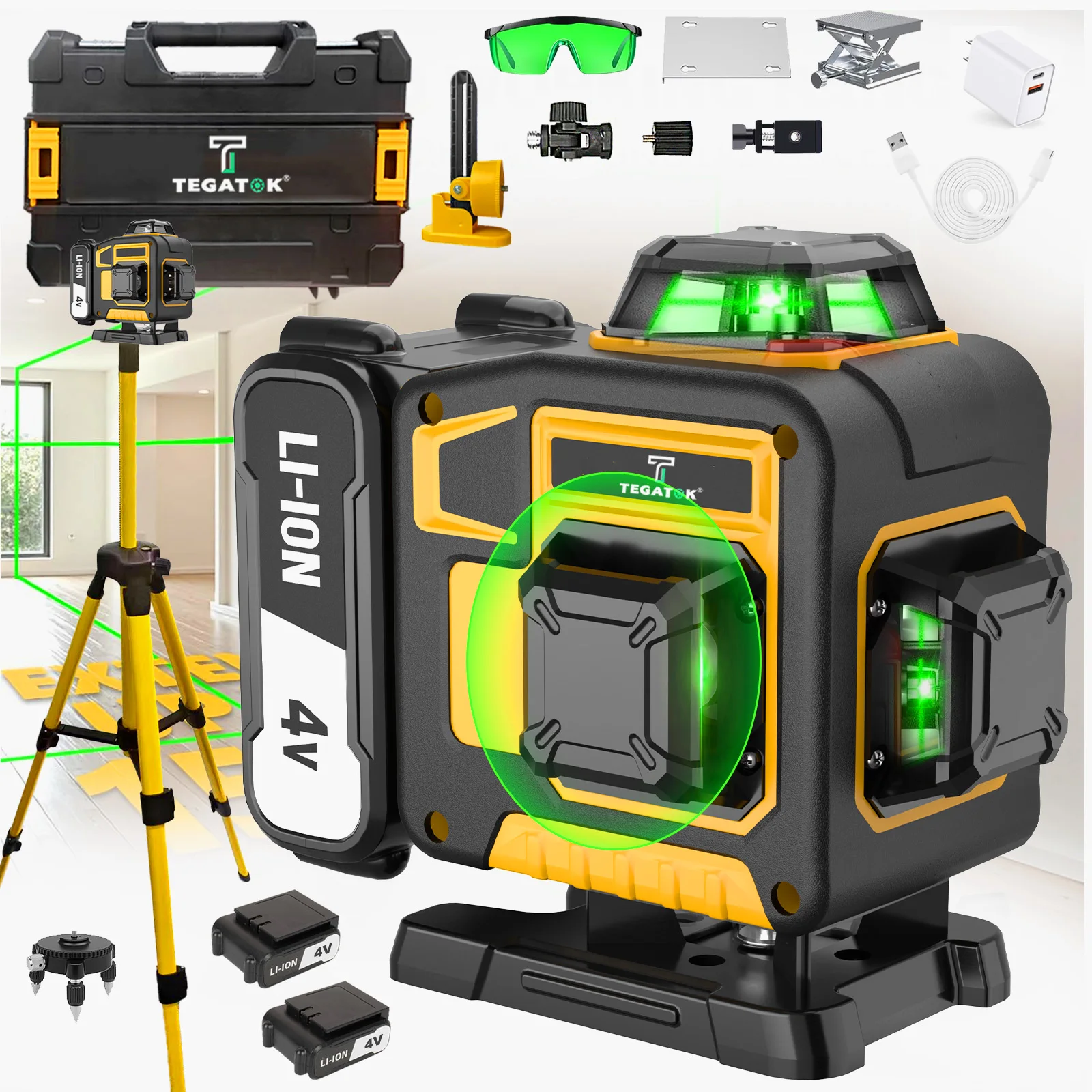 16 Line Laser Level Professional 4x360 ° Green Crosshair Laser Level Measuring Tool for Home Decoration Team with Tripod Battery