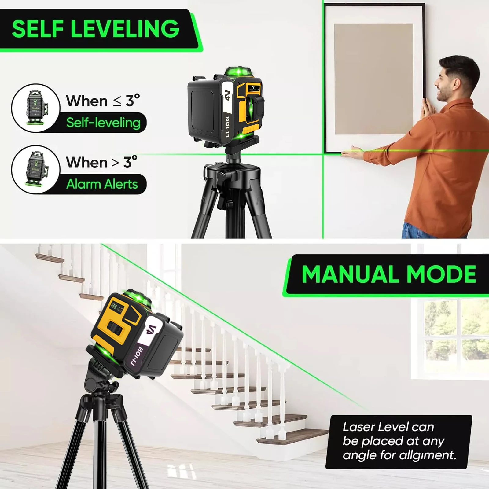 4. Intelligent self leveling, saving time and effort: automatic and fast leveling within ± 3 °