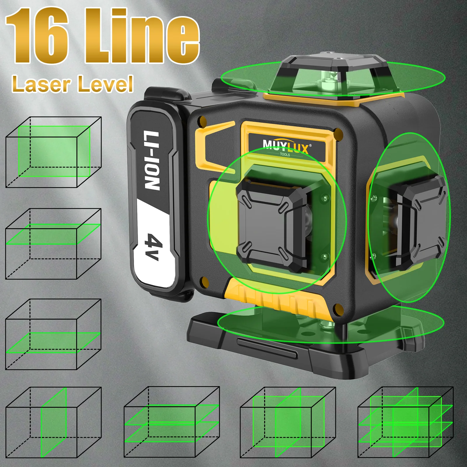 Laser type: 16 line 4 × 360 ° high brightness green light