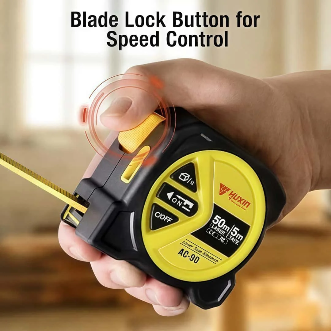 6.Auto-lock and Retract: The tape automatically locks the measurement position when extended, and retracts automatically with the push of a release button, safe and hand-friendly.